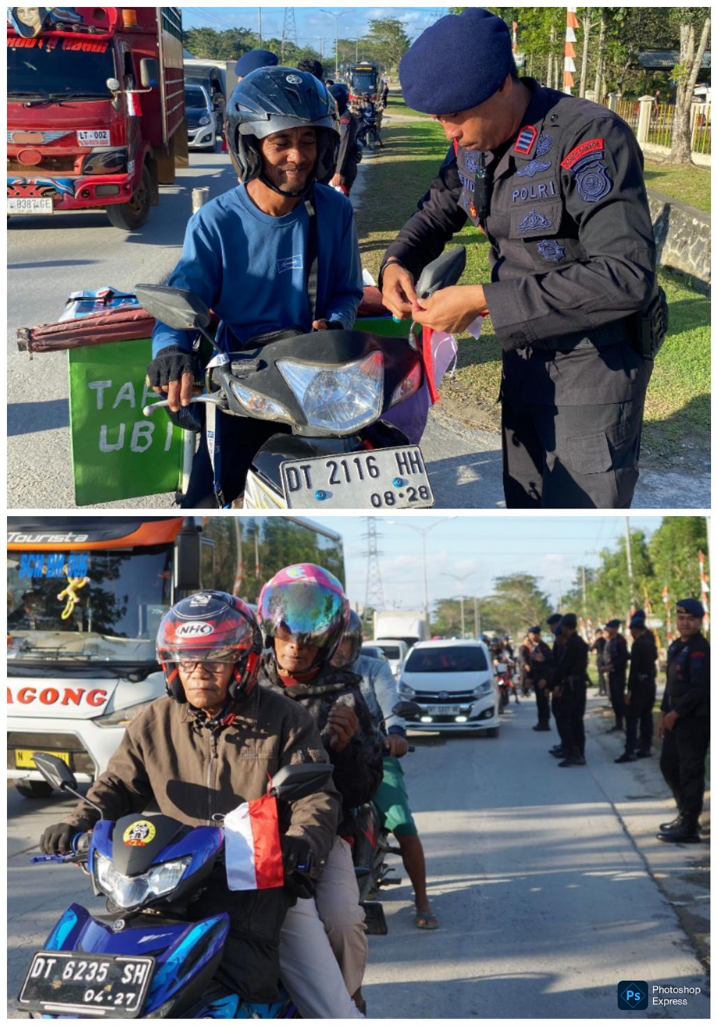 Dalam rangka menyemarakkan Hari Ulang Tahun ke-80 Kemerdekaan Republik Indonesia, Satuan Brimob Polda Sulawesi Tenggara (Sultra) melaksanakan aksi pembagian dan pemasangan bendera merah putih kepada para pengguna jalan yang melintas di depan Markas Komando (Mako) Brimob Polda Sultra.Sabtu, 2 Agustus 2025